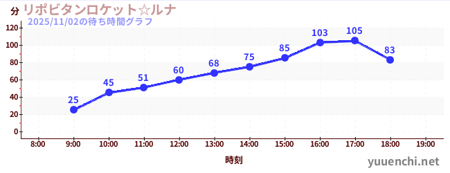 2025/11/02の待ち時間グラフ (リポビタンロケット☆ルナ)