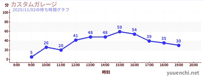 2025/11/02の待ち時間グラフ (カスタムガレージ)