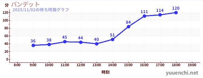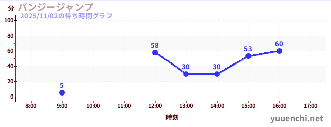 2025/11/02の待ち時間グラフ (バンジージャンプ)