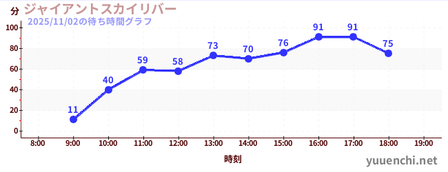 2025/11/02の待ち時間グラフ (ジャイアントスカイリバー)