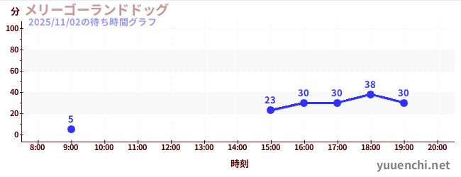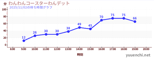 2025/11/02の待ち時間グラフ (わんわんコースターわんデット)