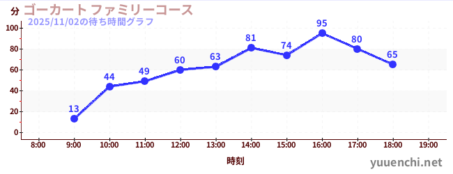 2025/11/02の待ち時間グラフ (ゴーカート ファミリーコース)