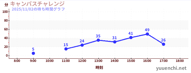 2025/11/02の待ち時間グラフ (キャンパスチャレンジ )