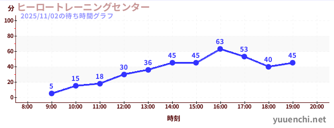 2025/11/02の待ち時間グラフ (ヒーロートレーニングセンター )