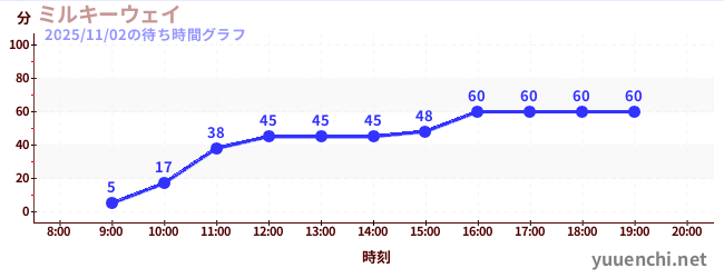 2025/11/02の待ち時間グラフ (ミルキーウェイ ペアシート)