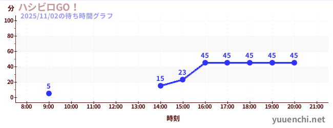 2025/11/02の待ち時間グラフ (ハシビロGO!)