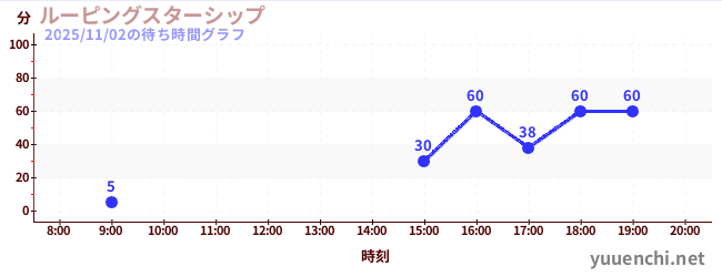 2025/11/02の待ち時間グラフ (ルーピングスターシップ)