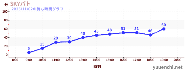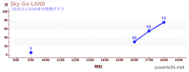 2025/11/02の待ち時間グラフ (Sky-Go-LAND)