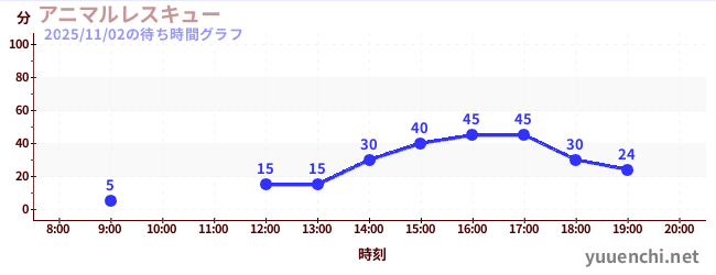 2025/11/02の待ち時間グラフ (アニマルレスキュー)