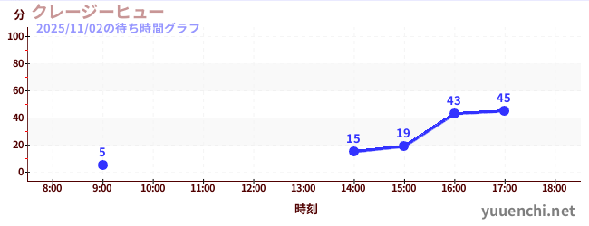 2025/11/02の待ち時間グラフ (クレージーヒュー)