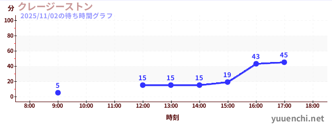 2025/11/02の待ち時間グラフ (クレージーストン)