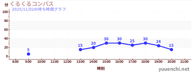 2025/11/02の待ち時間グラフ (くるくるコンパス)