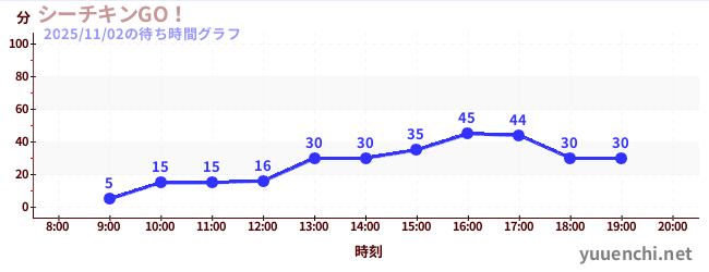 2025/11/02の待ち時間グラフ (シーチキンGO!)