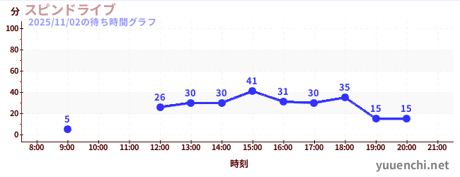 2025/11/02の待ち時間グラフ (スピンドライブ)