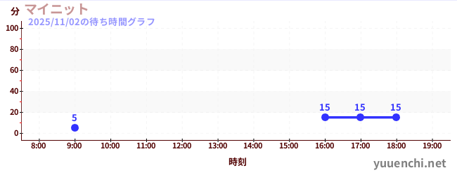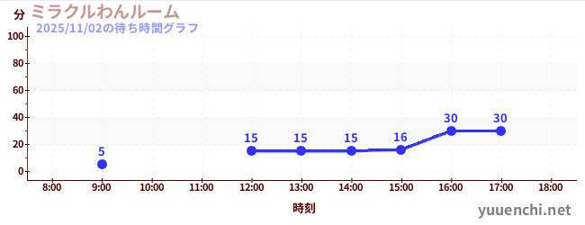 2025/11/02の待ち時間グラフ (ミラクルわんルーム)