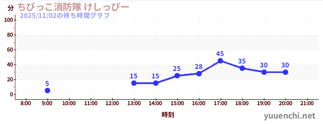 2025/11/02の待ち時間グラフ (ちびっこ消防隊 けしっぴー)