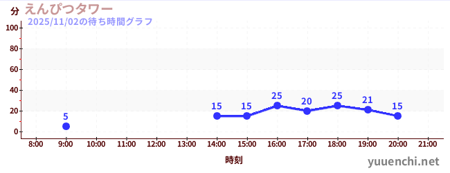 2025/11/02の待ち時間グラフ (えんぴつタワー)