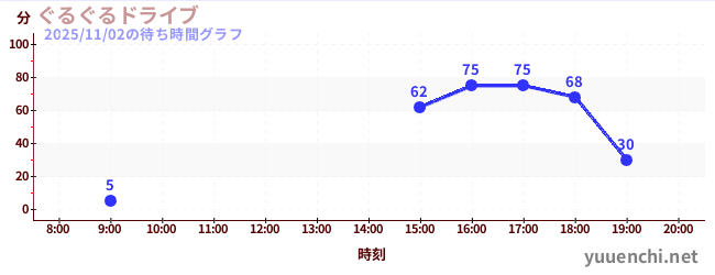 2025/11/02の待ち時間グラフ (ぐるぐるドライブ)