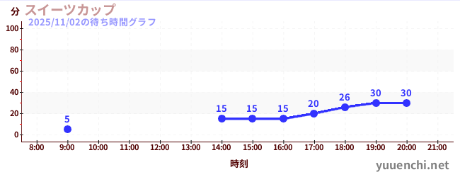 2025/11/02の待ち時間グラフ (スイーツカップ)