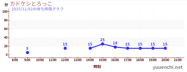 2025/11/02の待ち時間グラフ (カドケシとろっこ)