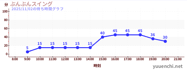 2025/11/02の待ち時間グラフ (ぶんぶんスイング)
