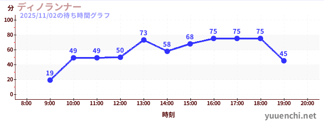 2025/11/02の待ち時間グラフ (ディノランナー)