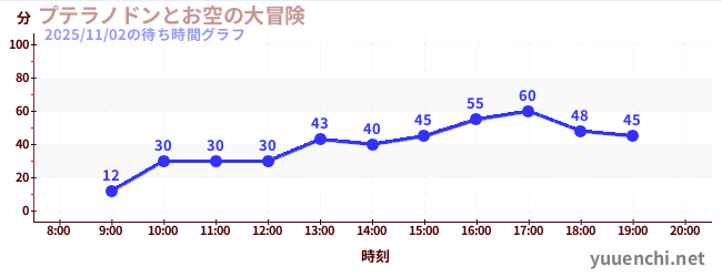 2025/11/02の待ち時間グラフ (プテラノドンとお空の大冒険)