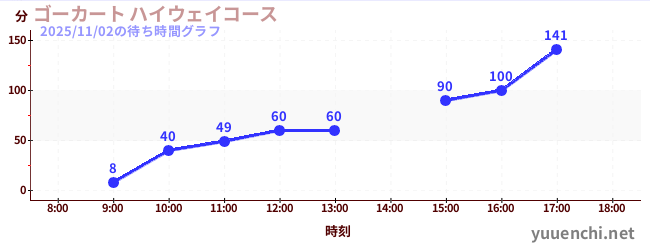 2025/11/02の待ち時間グラフ (ゴーカート ハイウェイコース)