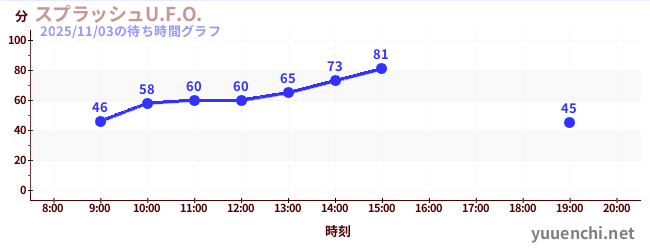 2025/11/03の待ち時間グラフ (スプラッシュU.F.O.)