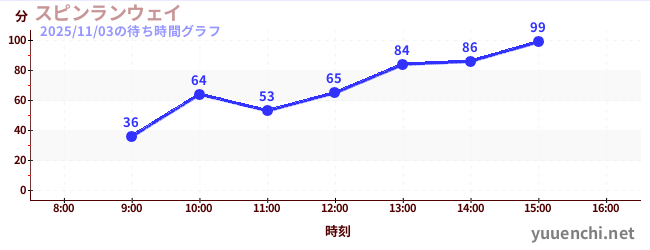 2025/11/03の待ち時間グラフ (スピンランウェイ)