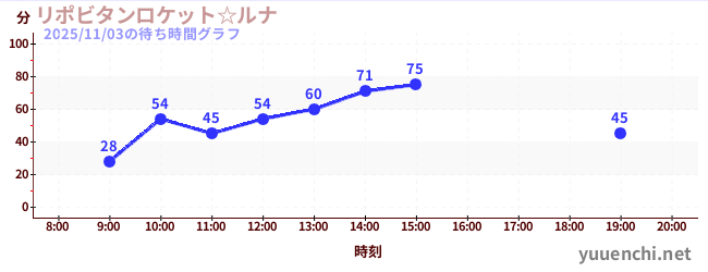 2025/11/03の待ち時間グラフ (リポビタンロケット☆ルナ)