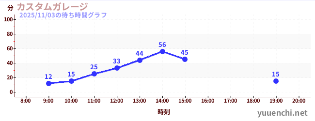 2025/11/03の待ち時間グラフ (カスタムガレージ)