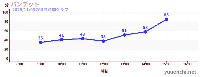 2025/11/03の待ち時間グラフ (スプラッシュバンデット)