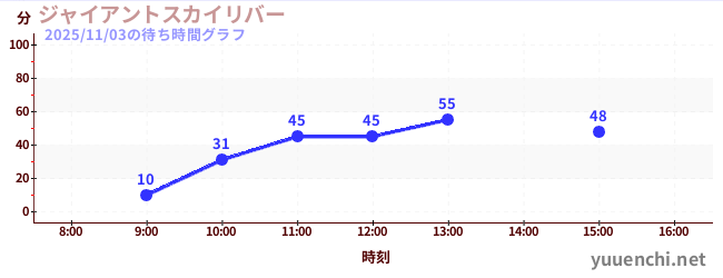 2025/11/03の待ち時間グラフ (ジャイアントスカイリバー)