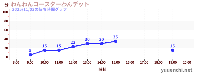 2025/11/03の待ち時間グラフ (わんわんコースターわんデット)