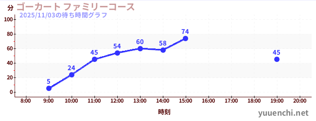 2025/11/03の待ち時間グラフ (ゴーカート ファミリーコース)