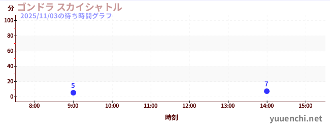 2025/11/03の待ち時間グラフ (ゴンドラ スカイシャトル)
