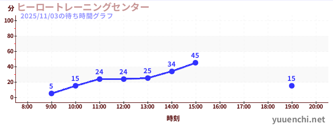 2025/11/03の待ち時間グラフ (ヒーロートレーニングセンター )