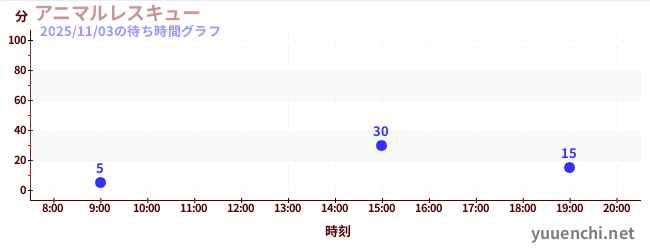 2025/11/03の待ち時間グラフ (アニマルレスキュー)