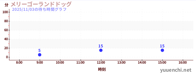 2025/11/03の待ち時間グラフ (メリーゴーランドドッグ)