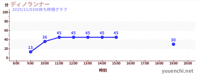 2025/11/03の待ち時間グラフ (ディノランナー)