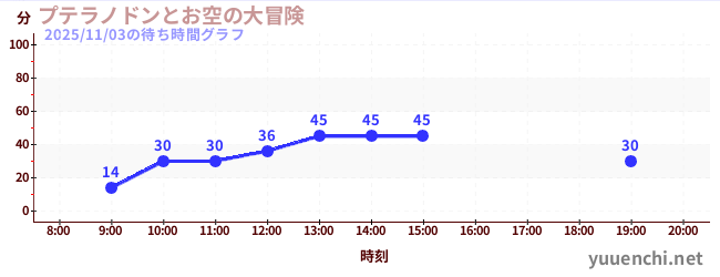 2025/11/03の待ち時間グラフ (プテラノドンとお空の大冒険)
