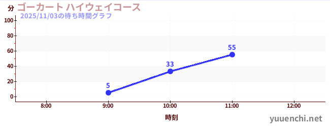 2025/11/03の待ち時間グラフ (ゴーカート ハイウェイコース)