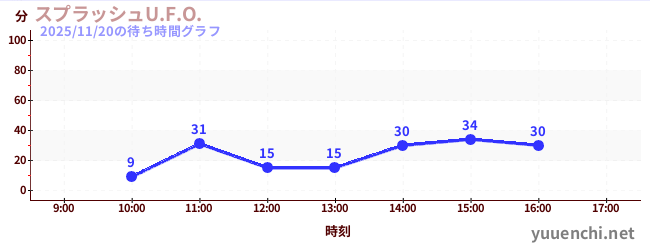 2025/11/20の待ち時間グラフ (スプラッシュU.F.O.)