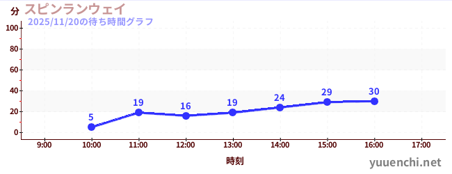 2025/11/20の待ち時間グラフ (スピンランウェイ)