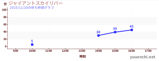 2025/11/20の待ち時間グラフ (ジャイアントスカイリバー)