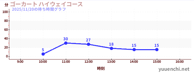 2025/11/20の待ち時間グラフ (ゴーカート ハイウェイコース)