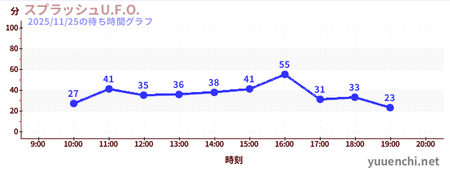 2025/11/25の待ち時間グラフ (スプラッシュU.F.O.)