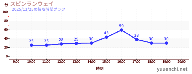 2025/11/25の待ち時間グラフ (スピンランウェイ)
