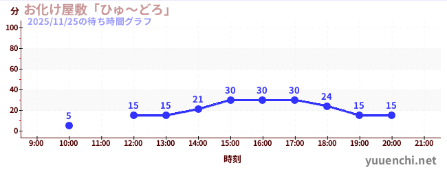 2025/11/25の待ち時間グラフ (お化け屋敷「ひゅ~どろ」)